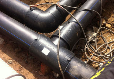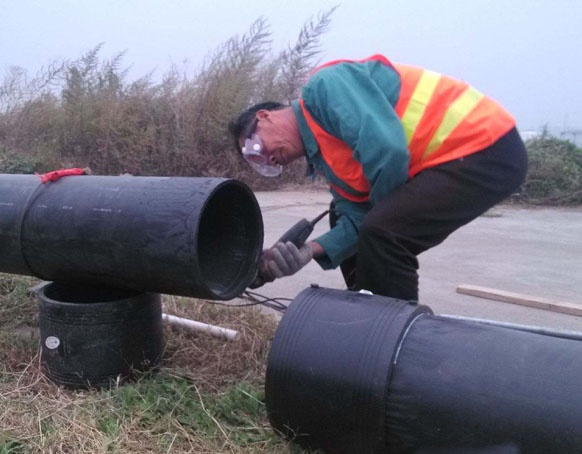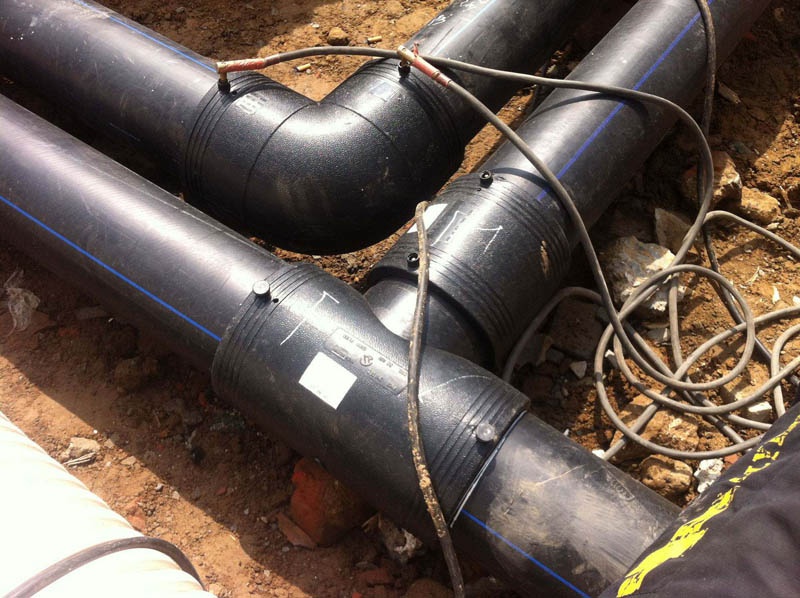 安裝工藝流程:備料—刮削氧化層—清潔焊接面—標記承插深度—檢測管件線圈—轉(zhuǎn)配管件—檢查配合—固定連接處—管件編號—焊接—冷卻—局部回填—試壓驗收—整體回填